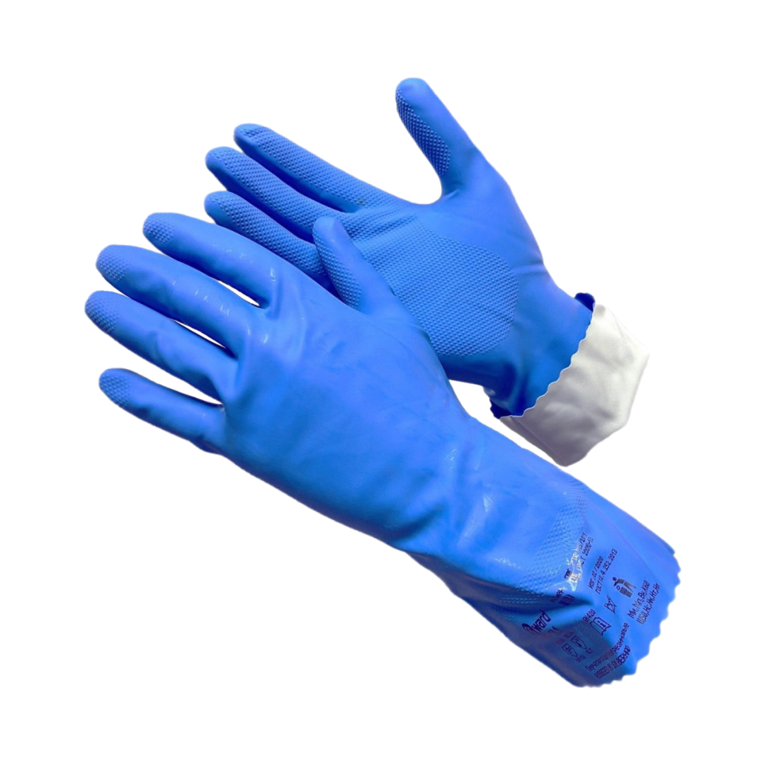 Прочные перчатки из натурального латекса. Специально разработанны для защиты от химии и работы с пищей обеспечивают отличную защиту от жиров и масел.