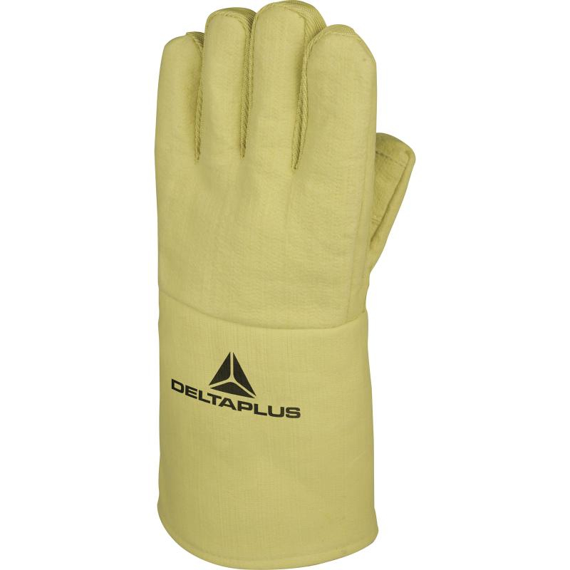 Антипорезные термостойкие перчатки из арамидной ткани на хлопчатобумажной подкладке. Общая длина перчатки – 36 см, манжеты – 16 см. Максимальная устойчивость к порезам, разрывам. Максимальная устойчивость к воспламенению, конвективному теплу, небольшим количествам брызг расплавленного металла, при контакте с повышенными температурами. Конструкция перчатки в форме наложения слоев обеспечивает защиту от воздействия контактного тепла до 500°C в течение 15 секунд