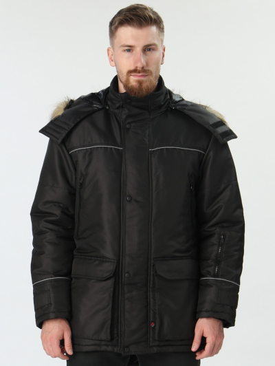 - застёжкой на тесьму «молния» с двумя внешними утепленными ветрозащитными планками и одной внутренней