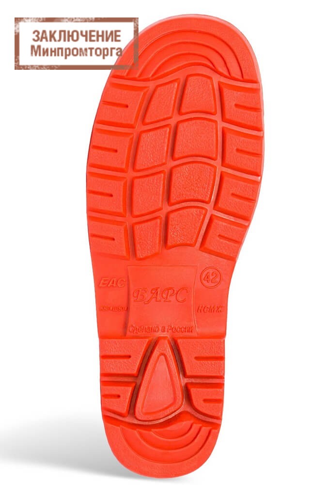 Подошва стойкая к истиранию, предотвращает скольжение на любых видах грунта и зажиренных поверхностях. Удобная форма колодки способствует длительной и комфортной носке. В пяточной части находится шпора для удобства снятия.