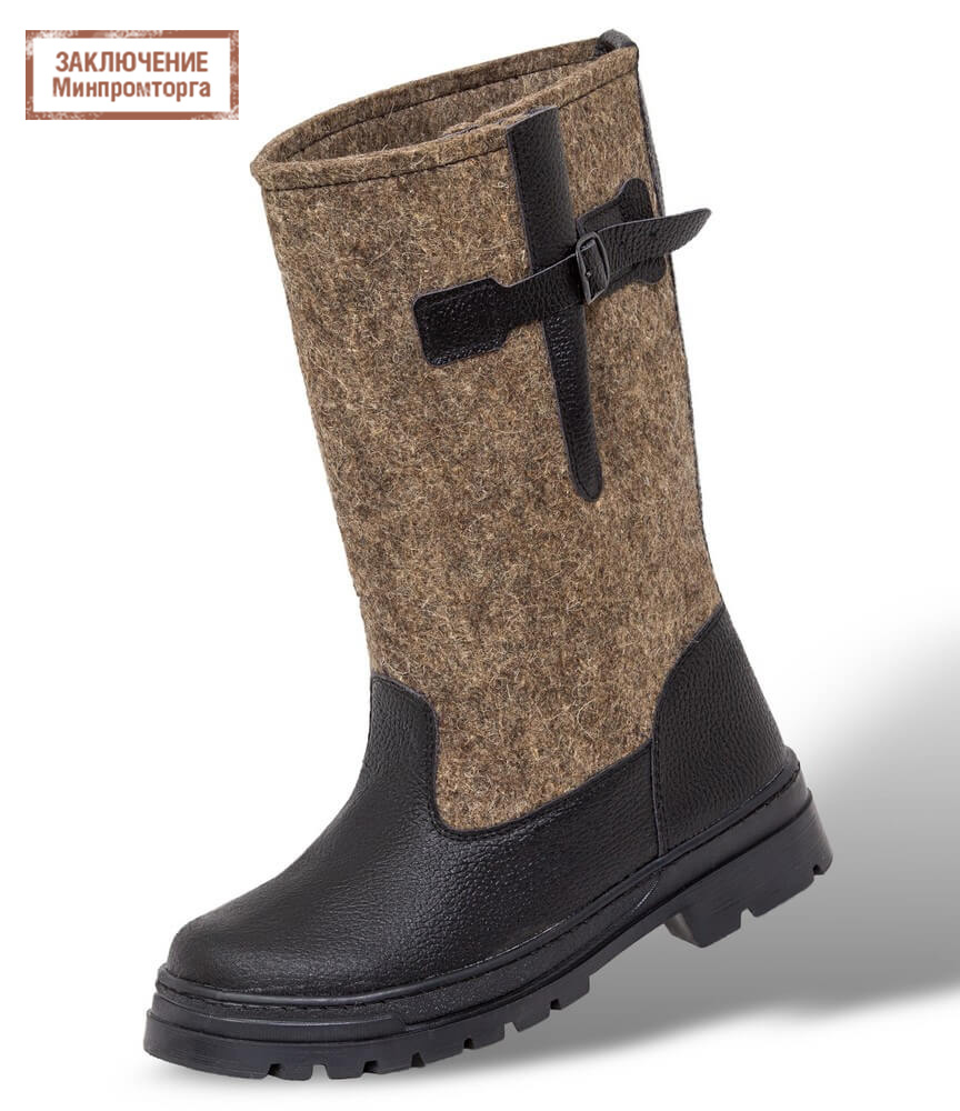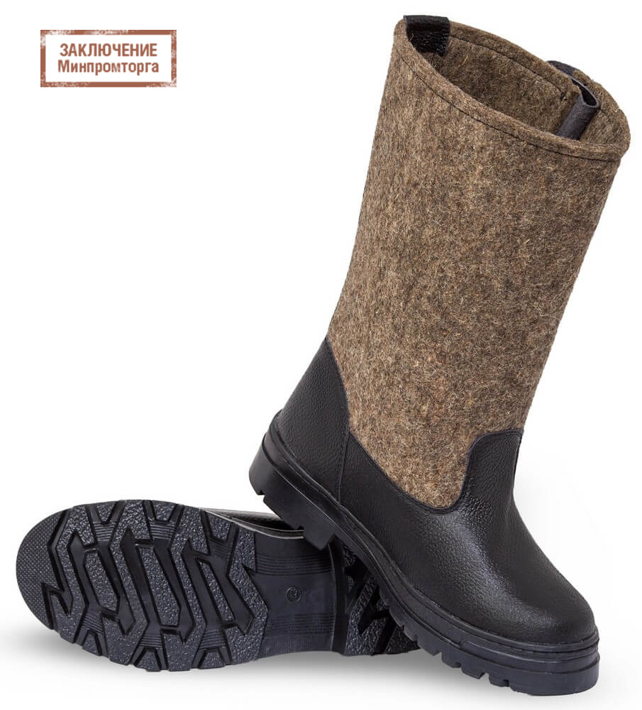 Сапоги изготавливаются из натуральных материалов: кожи, войлока обувногошерсть 100 толщиной 5 мм, которые эффективно удерживают тепло при температуре от -20С до -45С и в то же время обладают дышащими свойствами. Такая спецобувь имеет подошву ТЭП и – современный материал, который обладает теплоизоляционными и амортизирующими свойствами.