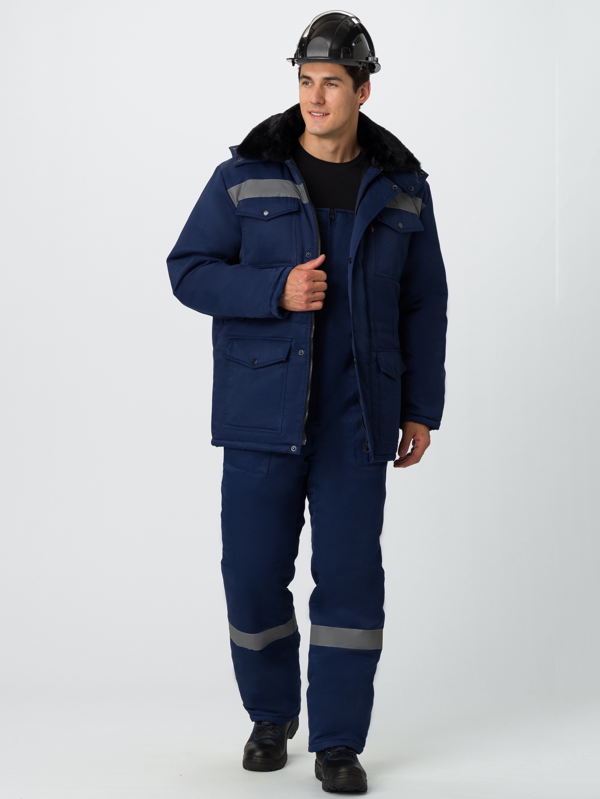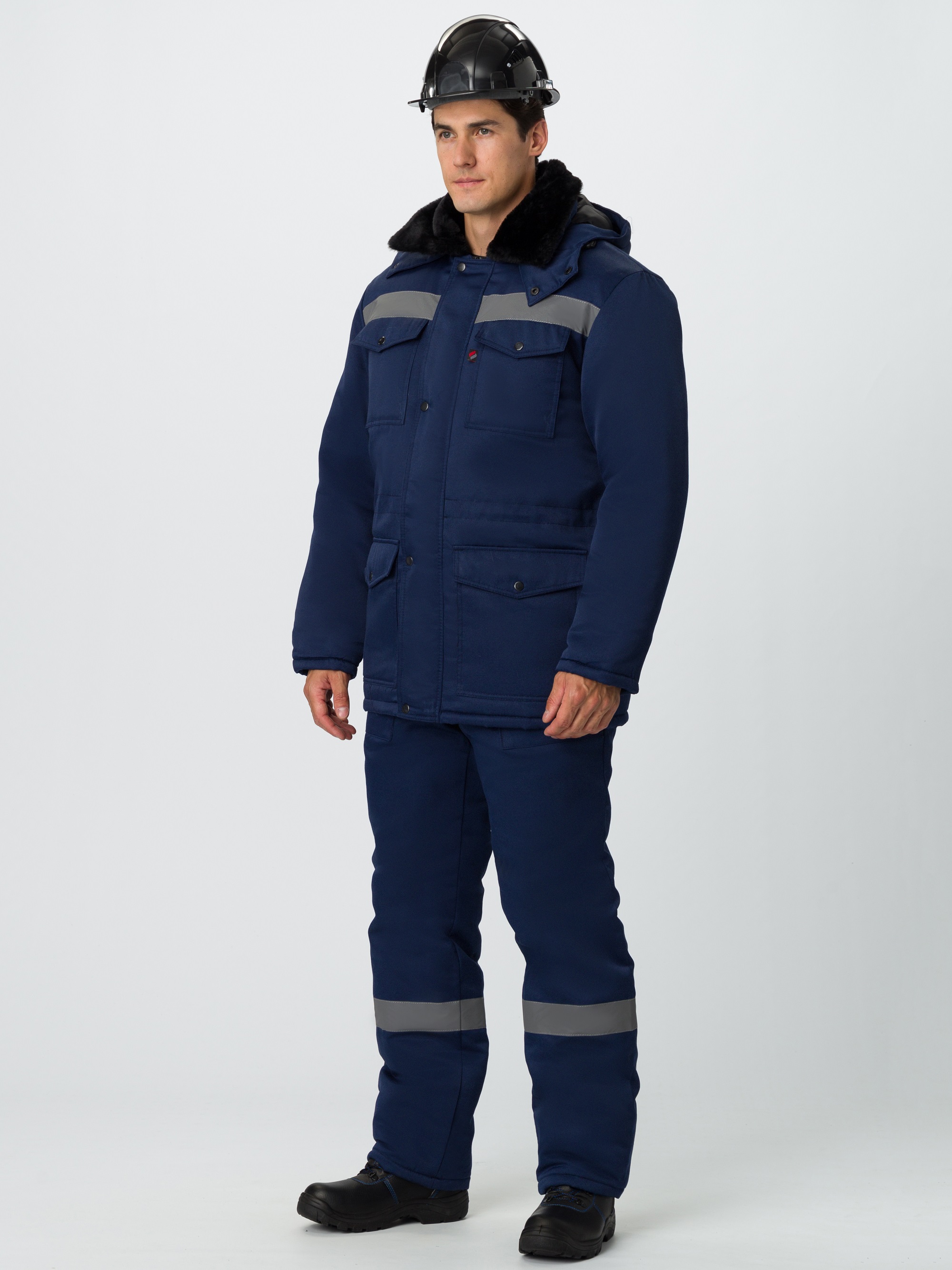 - на полочках расположены утепленные нагрудные и нижние накладные карманы с клапанами, застегивающиеся на кнопку