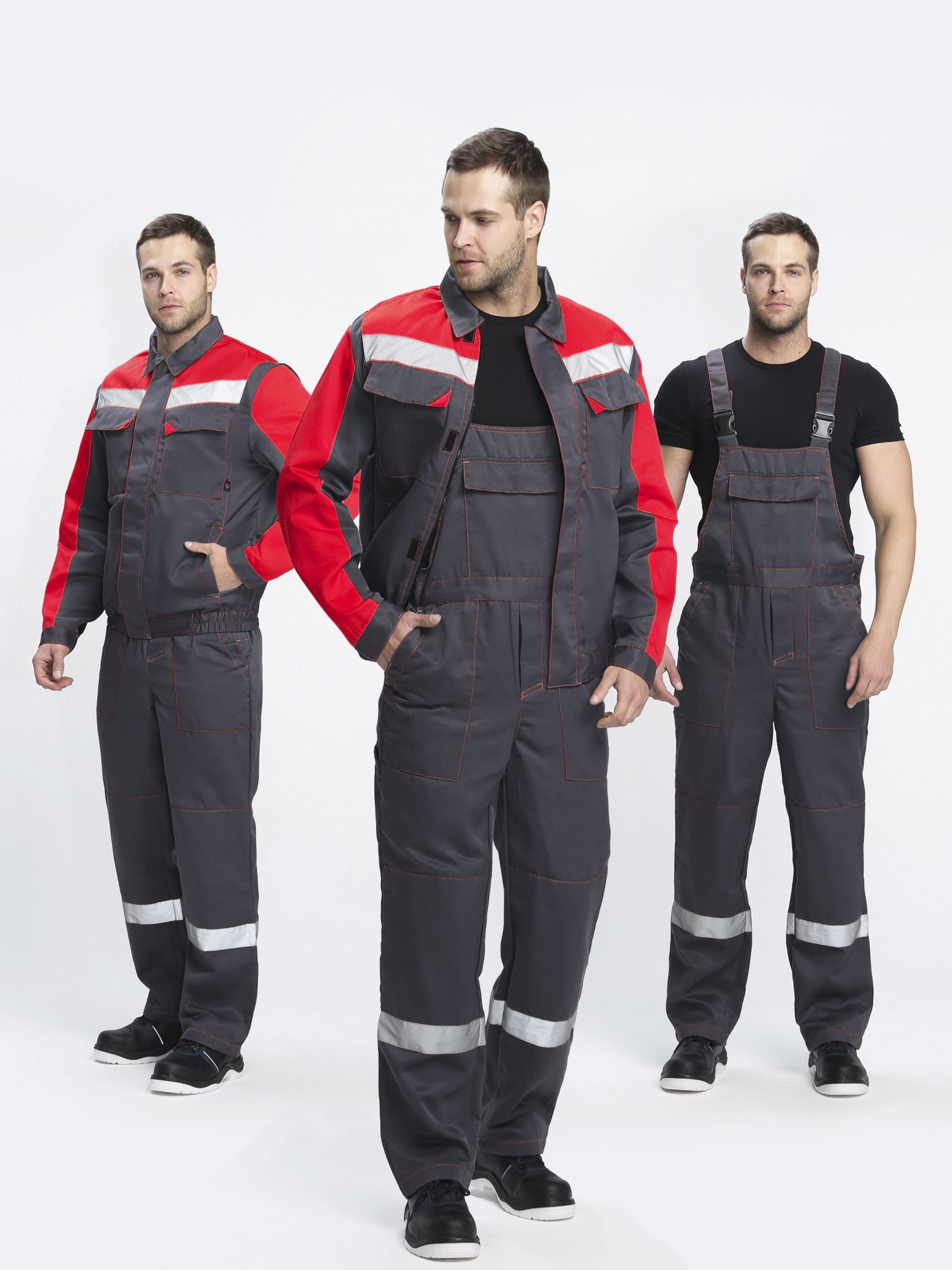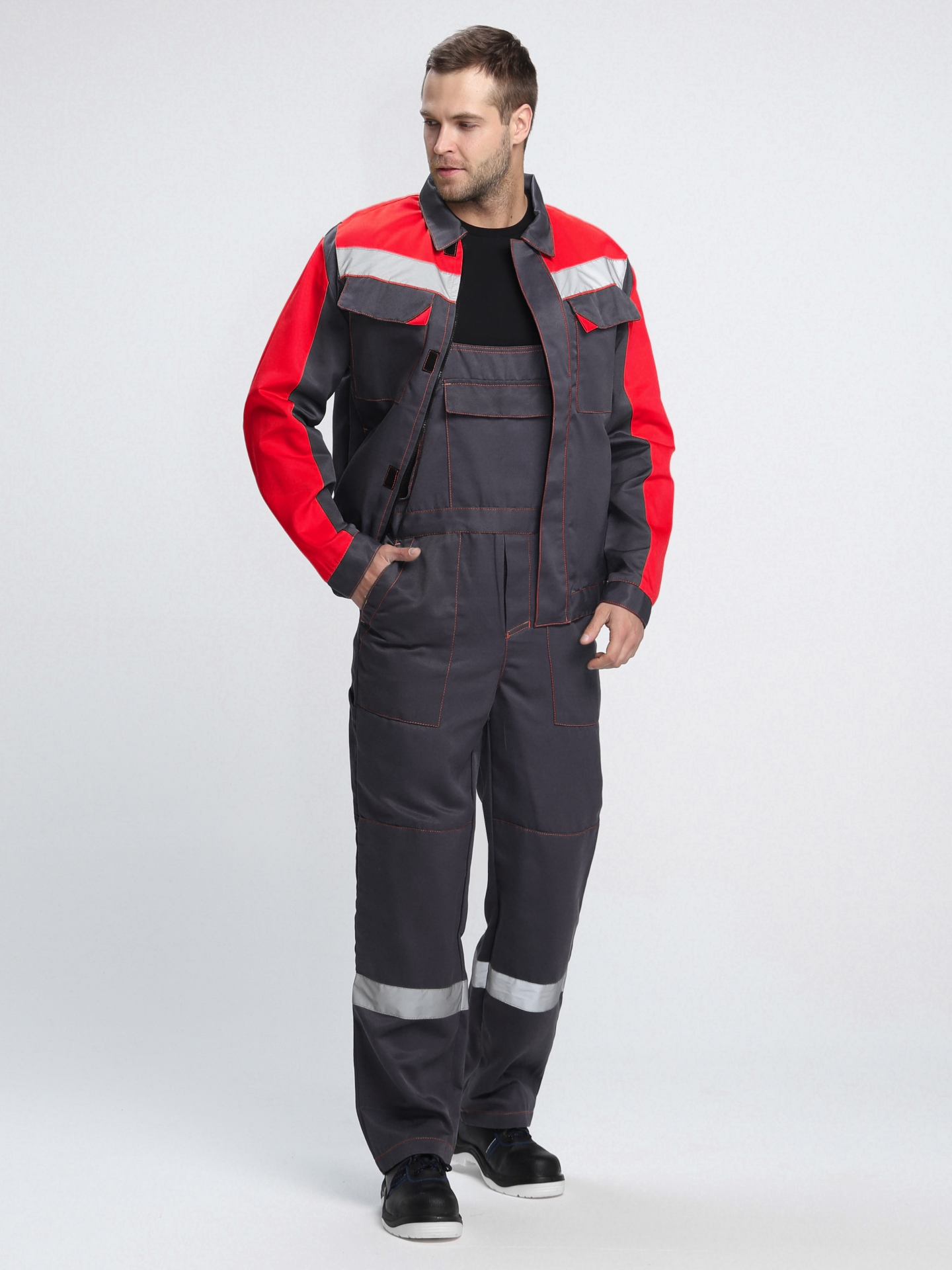 • широкими светоотражающими полосами 50 мм для безопасной работы в местах с плохим освещением и в темное время суток.
