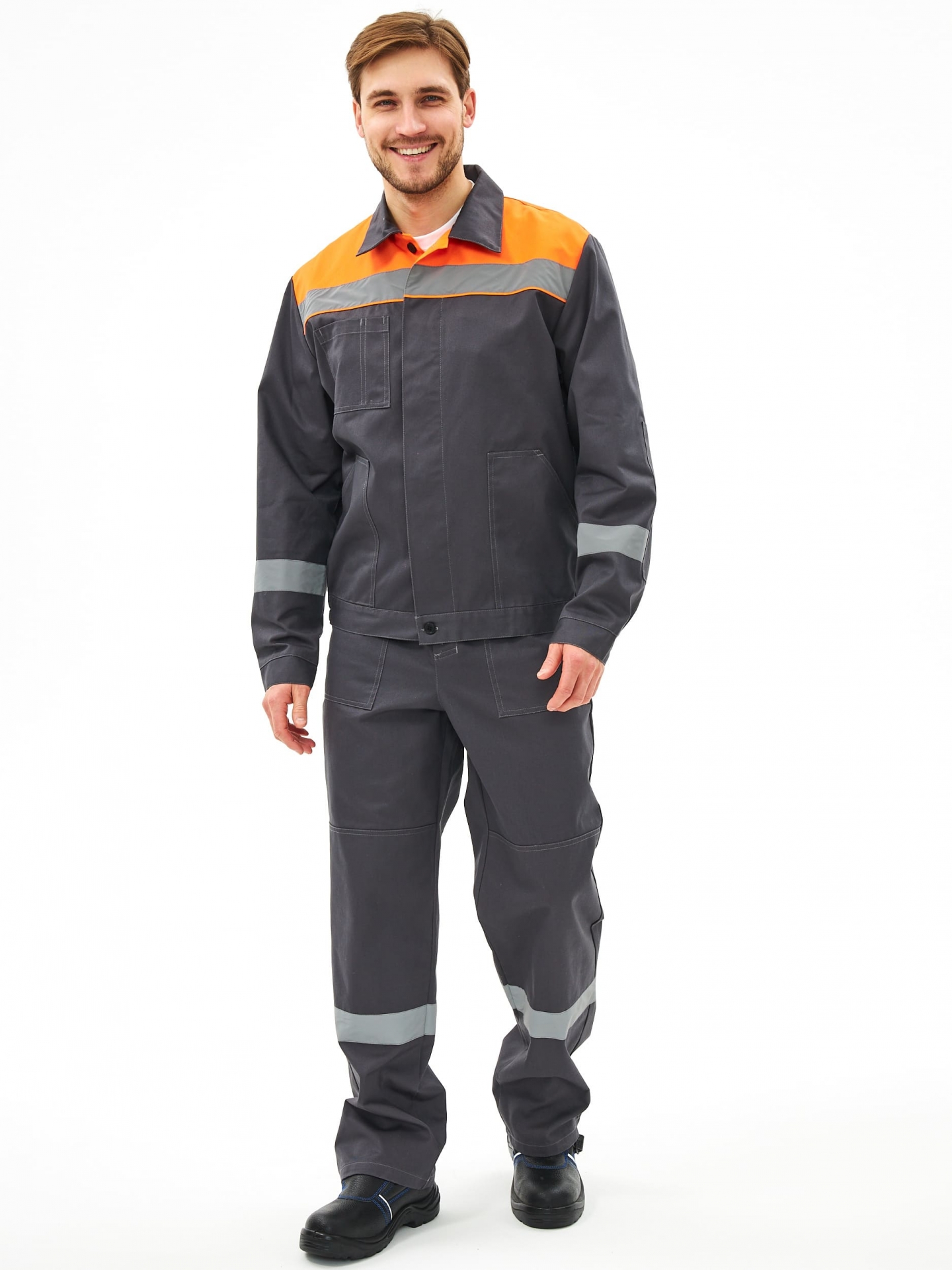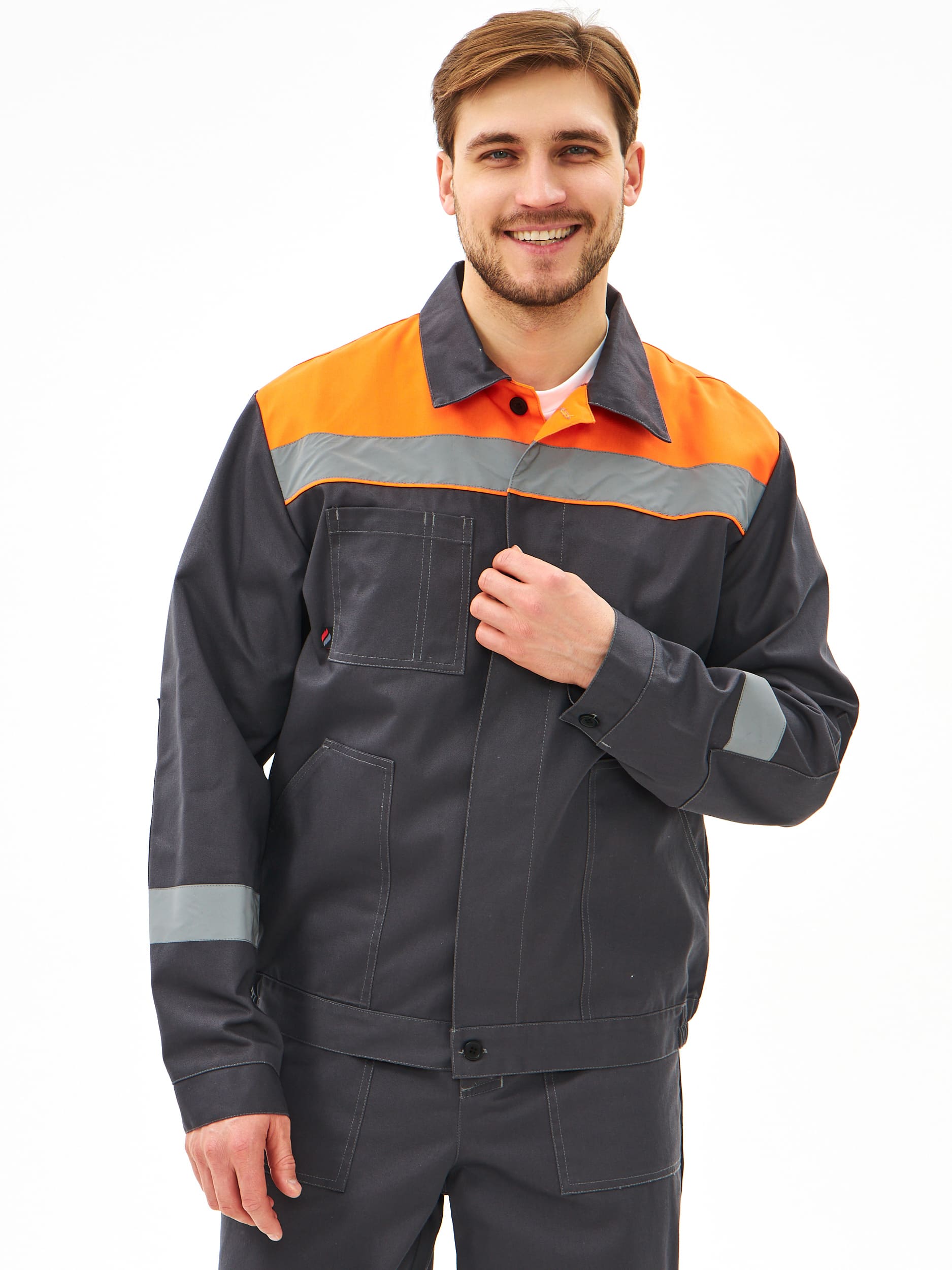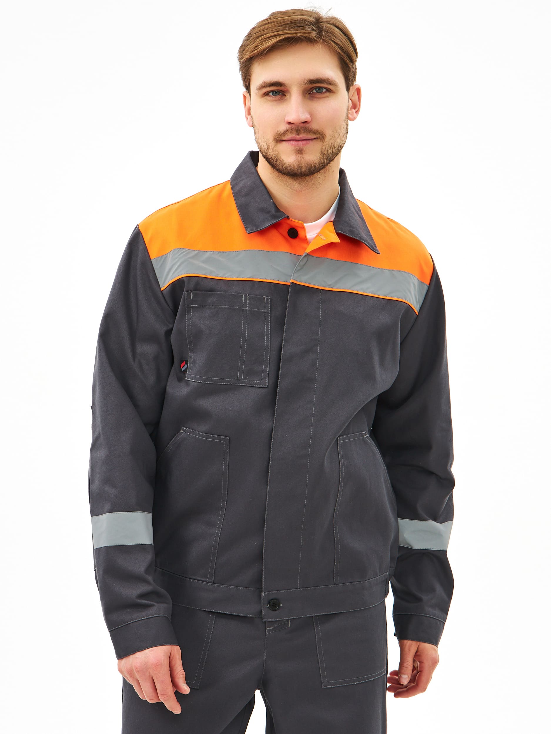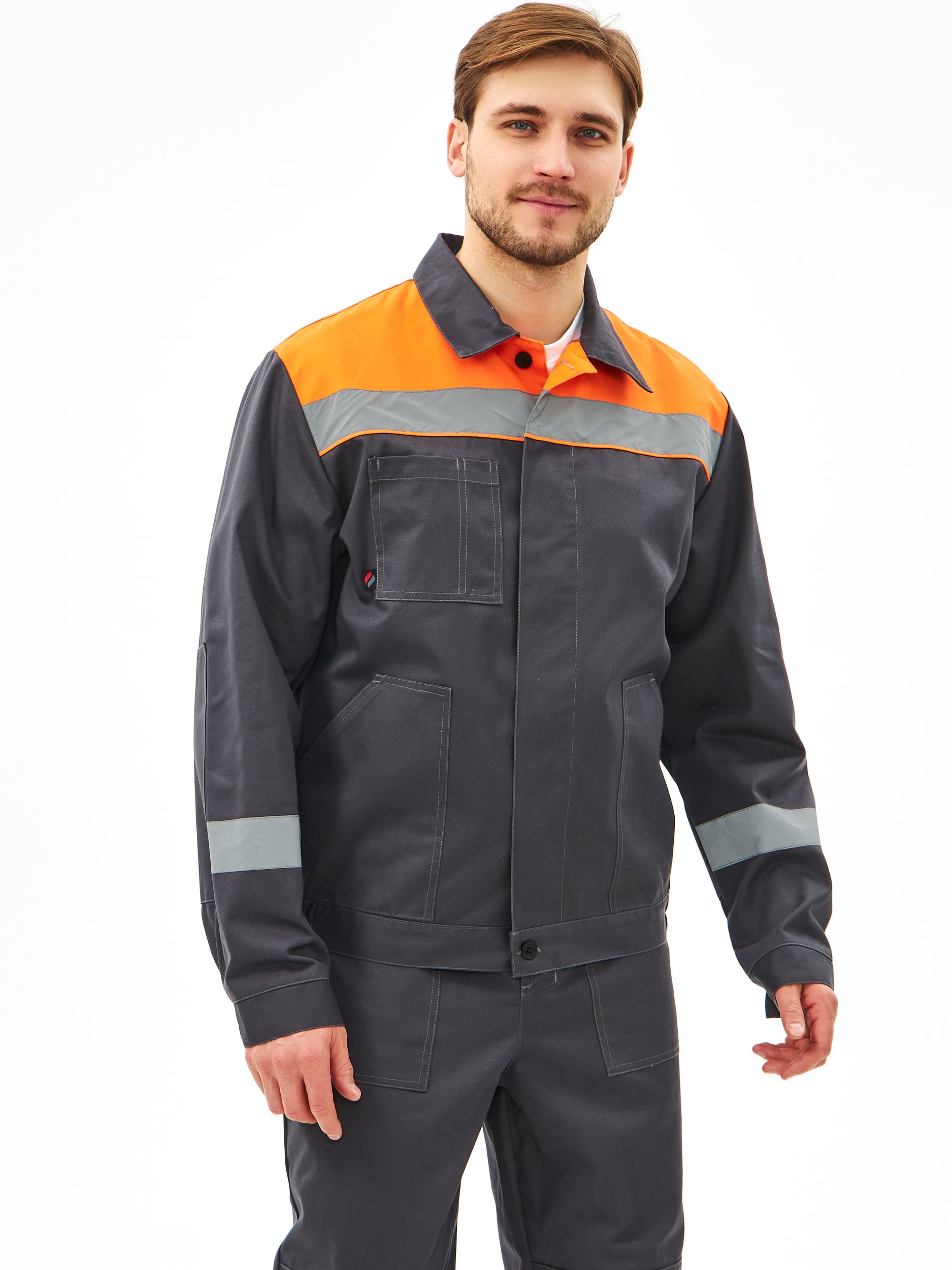 Костюм испытан в реальных рабочих условиях и получил положительные отзывы от работников разных специальностей. Благодаря высокому содержанию хлопка, ткань дышит, хорошо впитывает влагу и отводит ее от тела. Высокопрочные полиэфирные волокна обеспечивают прочность, малоусадочность и легкость в уходе. Накладные детали настрочены двойной строчкой.