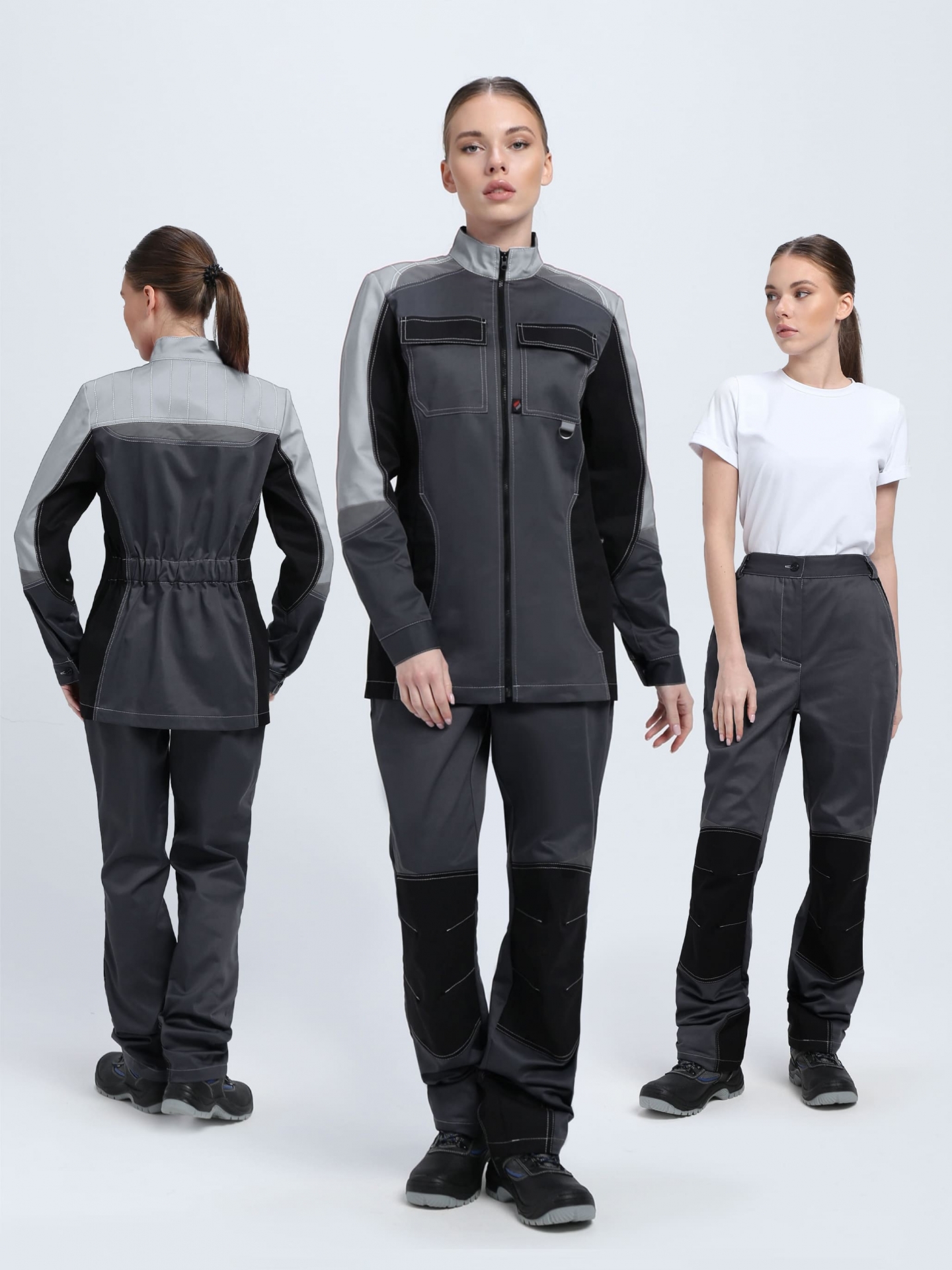- светоотражающая полоса 50 мм по кокеткам полочек и спинки, по рукавам