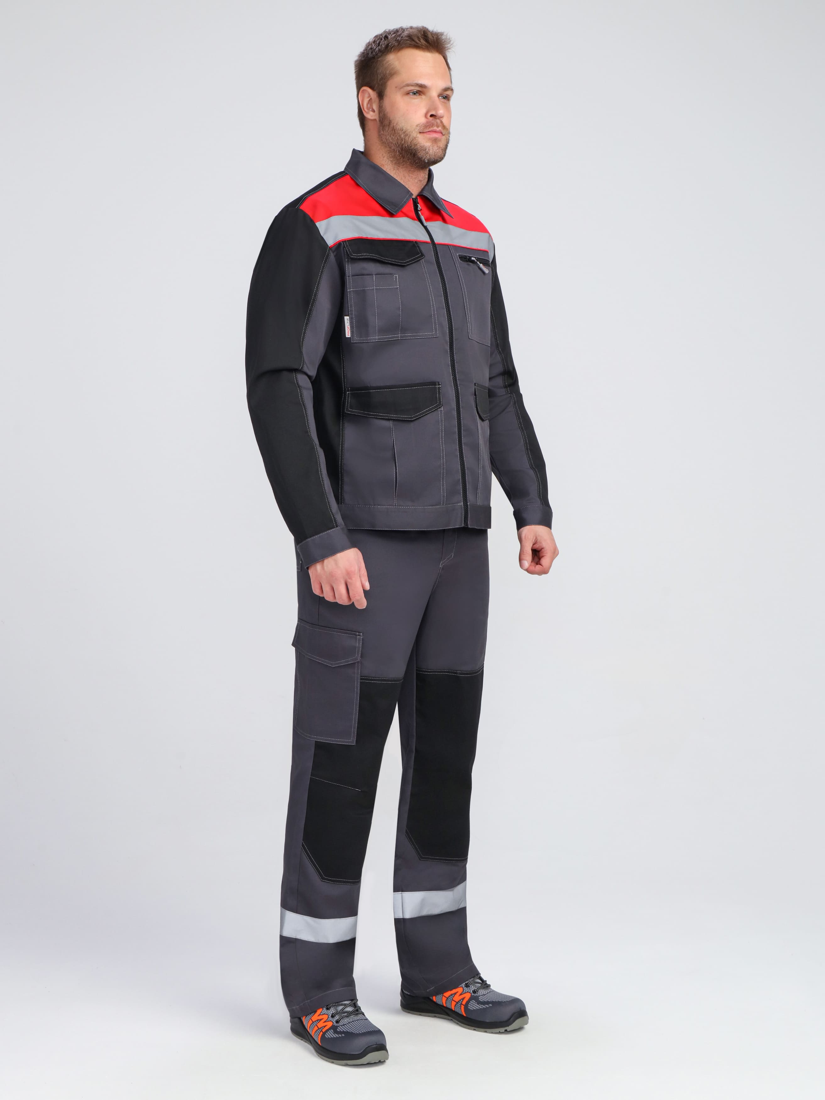 - Широкая светоотражающая полоса по низу кокеток для безопасности в темное время суток