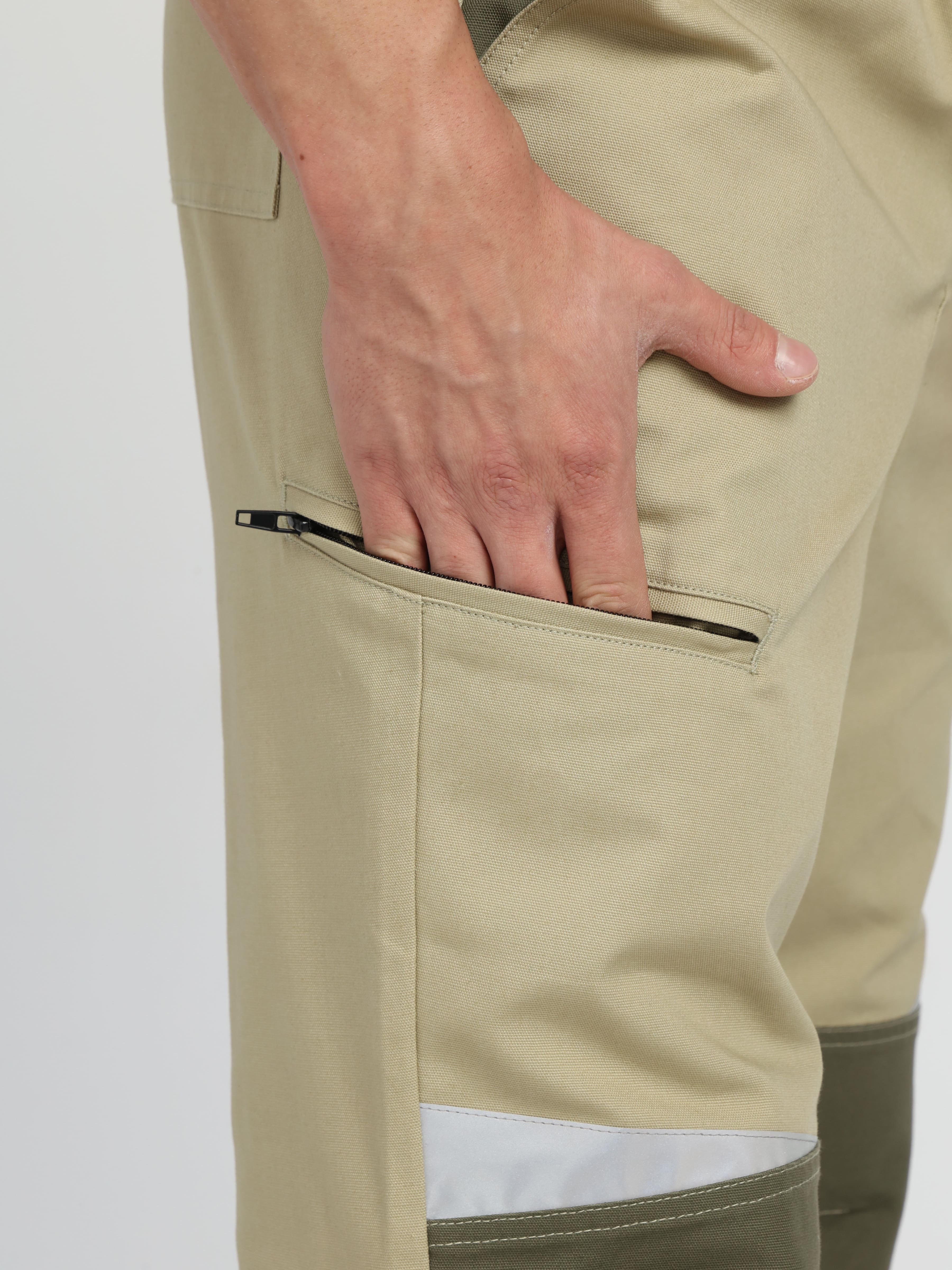 - в районе бедра слева накладной карман с объемом, закрывающиеся клапаном с двумя участками ленты контакт, справа карман, застегивающийся на тесьму-«молния»
