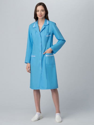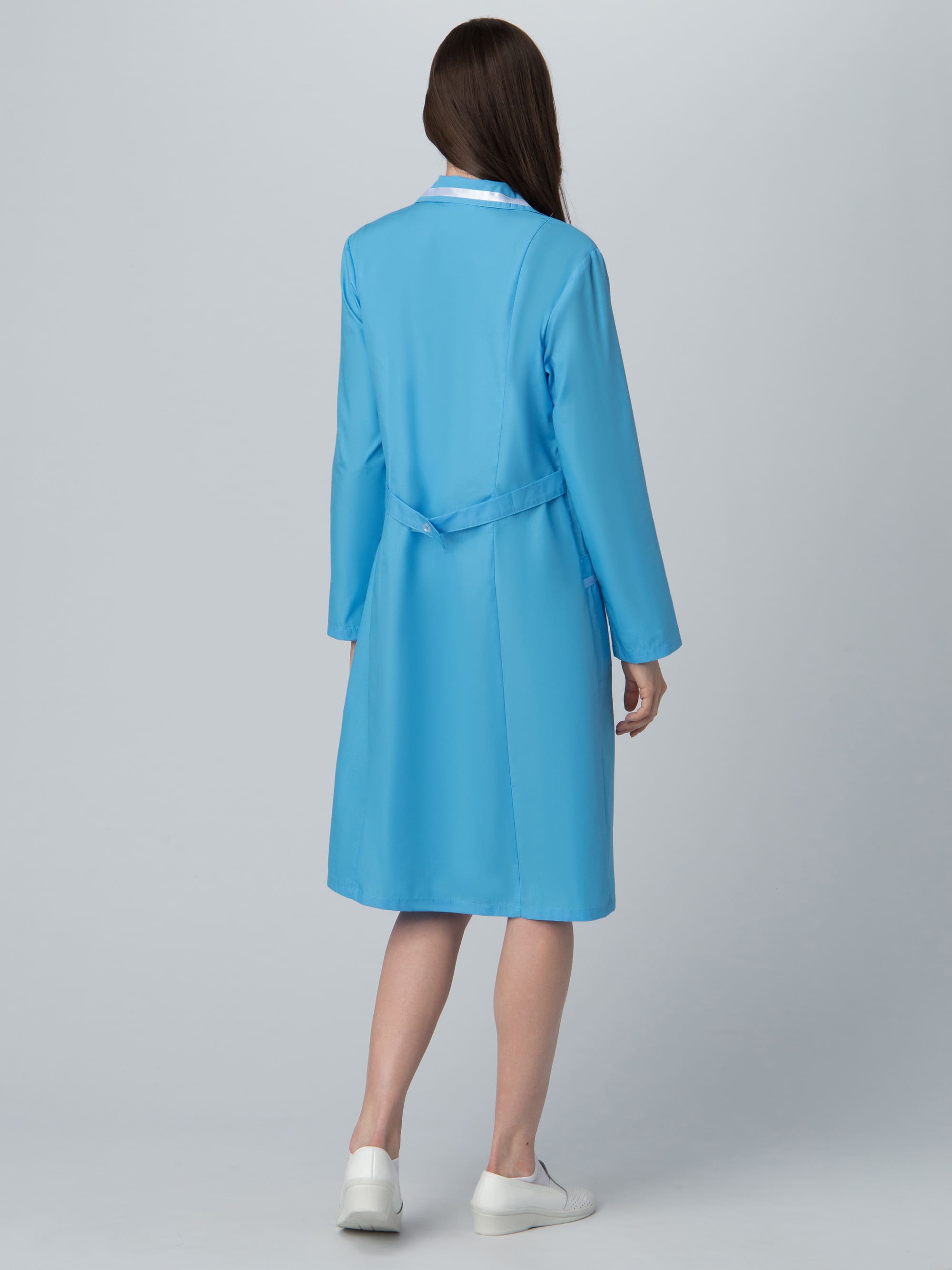 - атласным белым кантом отделаны карманы и воротник