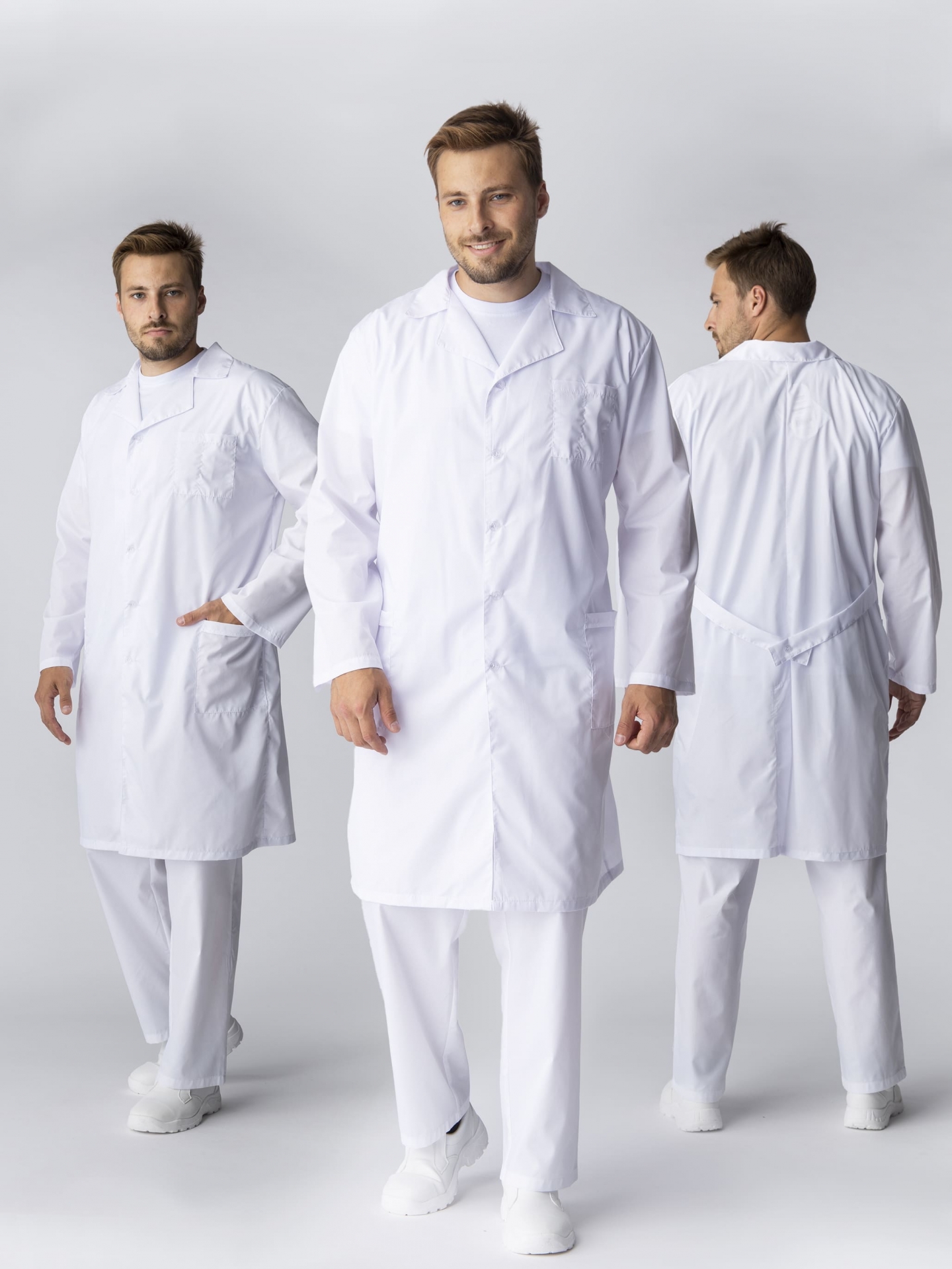 Халат рабочий мужской «Классика» предназначен для работы на производствах, в медицинских и образовательных учреждениях. Халат белый рабочий изготовлен в соответствии с ГОСТ из высококачественных материалов для комфортной деятельности в разных температурных режимах. Плотная ткань с водоотталкивающей пропиткой надежно защищает от загрязнений разного типа, отличается износостойкостью, длительным периодом эксплуатации, не просвечивает. Халат с длинным рукавом и длиной ниже колена застегивается на пуговицы, очень удобен в носке. Рабочая одежда регулируется по талии с помощью вшивного пояса на кнопке. В объемных боковых карманах удобно хранить записи и мелочи. Двойной нагрудный карман отличается повышенной прочностью и создан для размещения острых предметов.