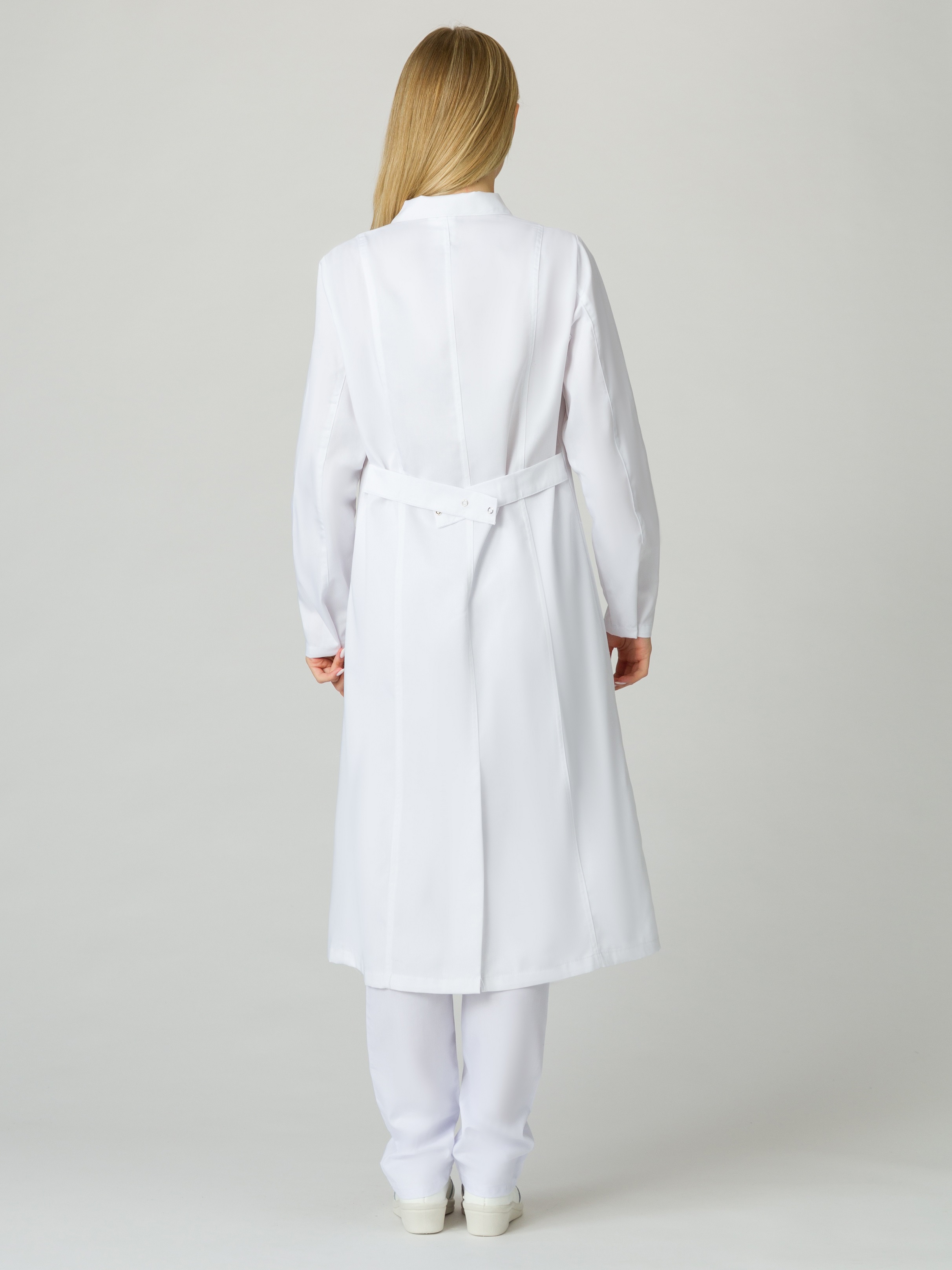 - регулировка объема талии вшивным поясом на спинке, фиксирующимся на одну кнопку