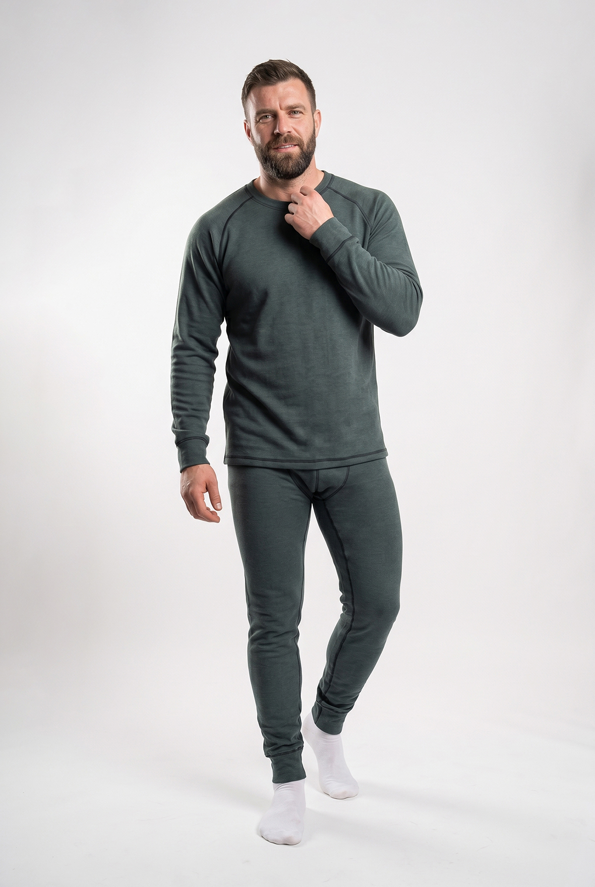 Наружный слой -хлопковый , имеющий высокий коэффициент гигроскопичности, до 20%, поглощает влагу с тела через внутренний слой полиэстера, который прекрасно отводит избыточную влагу. Поскольку полиэстер имеет коэффициент гигроскопичности 0,5%, он остаётся всегда сухим, а дополнительная воздушная прослойка между слоями снижает теплопроводность изделия. При изготовлении изделия применяется антибактерицидная пропитка производства Южной Кореи, представляющая собой микрогранулы, содержащие внутри натуральные ароматные экстракты растений, обеспечивает длительный полезный эффект за счет медленного разрушения микрогранул (до 20 стирок). Изделие для удобства и прочности прошито "плоскими" швами.
