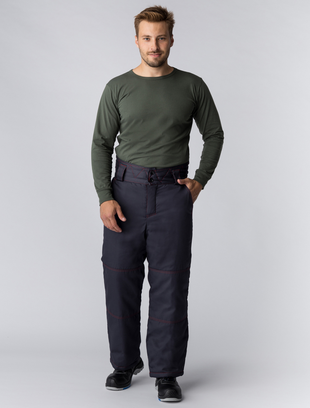 - Усилительные накладки в области колена для повышения износостойкости