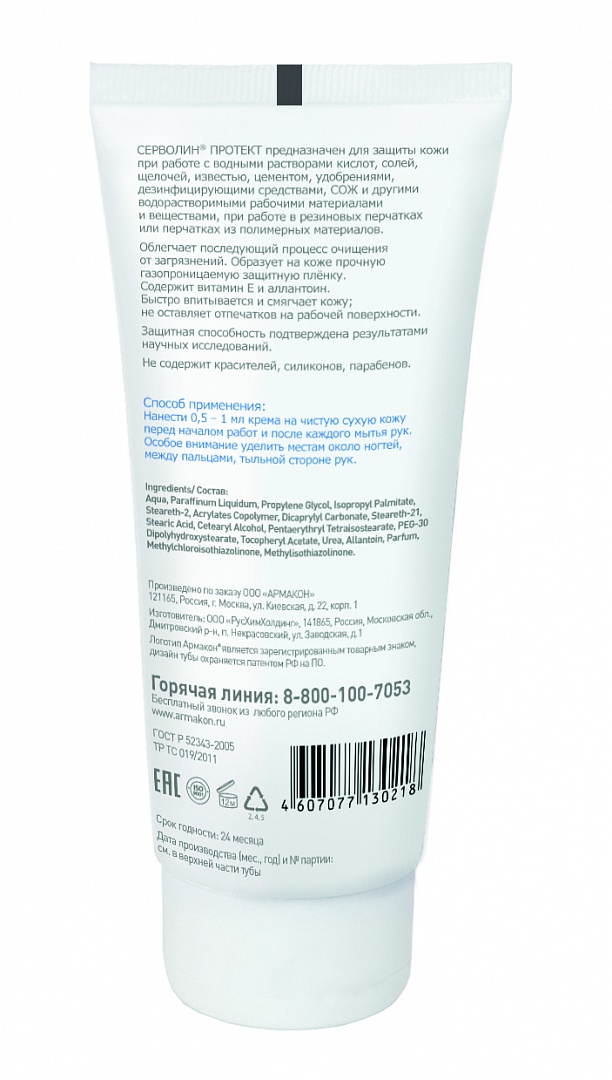 Крем защитный АРМАКОН™ СЕРВОЛИН ПРОТЕКТ гидрофобный 100 мл, 1198