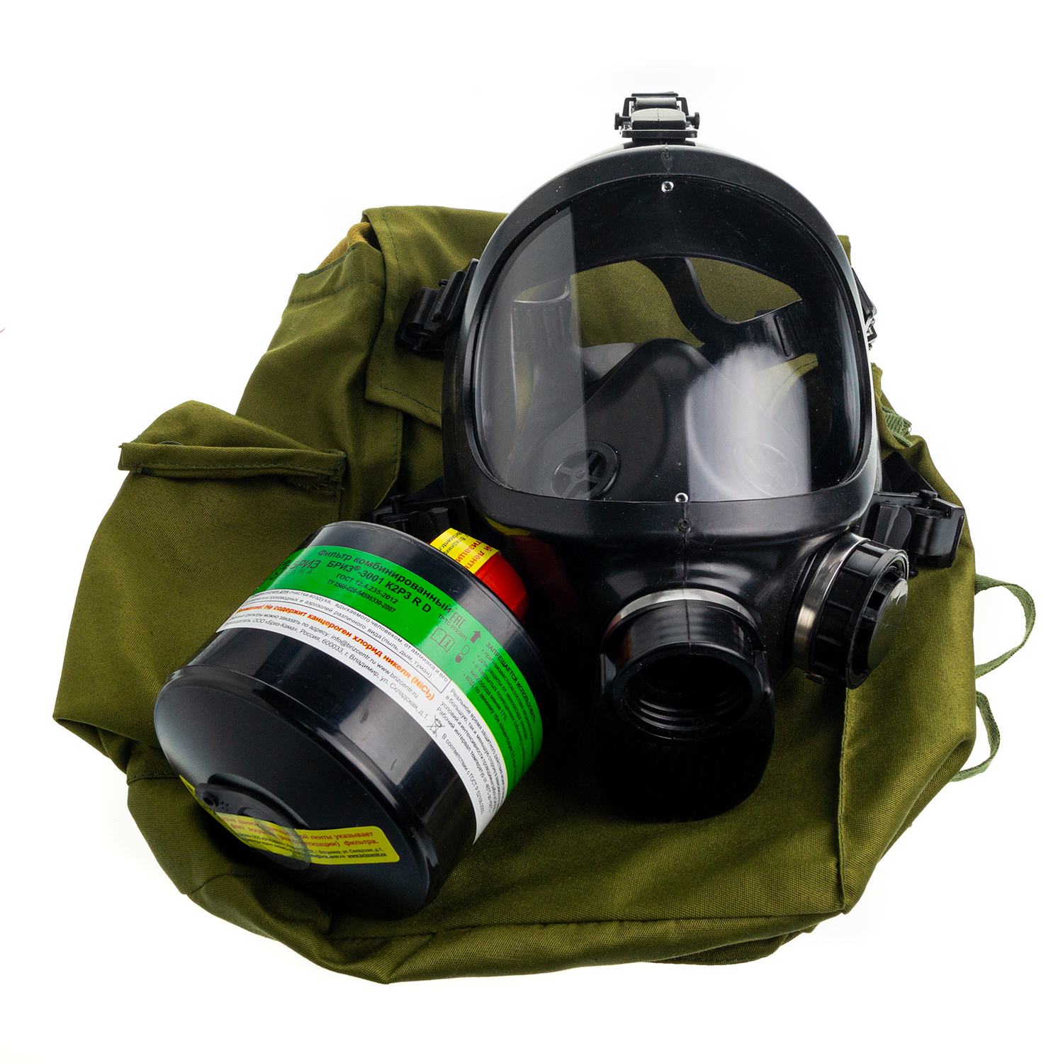 Противогаз фильтрующий «Бриз-3301 ППФ» марки K2P3 R D с лицевой частью «Бриз-4301М ППМ» категория 2 обеспечивает защиту органов дыхания, глаз и кожи лица от: